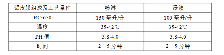 2.鋁皮膜劑組成及操作條件: